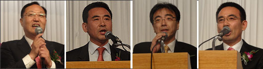 4일 서울 잠실 롯데호텔에서 열린 이대약대 개국동문회 정기총회장을 찾은 대한약사회장과 서울시약사회장 예비후보들은 총회 중 별도의 시간을 갖고 동문들의 지지를 호소했다.