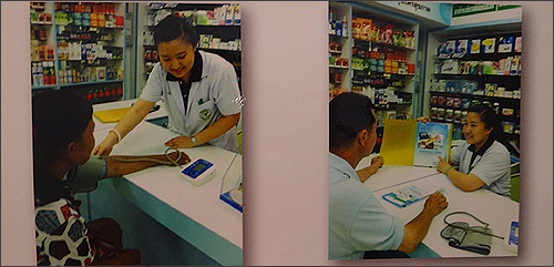 포스터에서 태국 카녹약국의 약사들은 지역 약국에서 당뇨병 환자들의 건강을 관리하는 서비스를 제공, 그 결과에 대해 발표했다.
