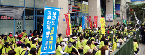 거리행진 과정에서 2500여 명의 간호사들은 법안 개정의 부당성을 알리는 전단지를 천안시민들에게 배포하기도 했다.