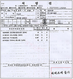 대체조제 불가 처방전은 크게 두 가지 형태다. 먼저 의료기관이나 보건소 처방전 발행 시스템을 통해 자동으로 인쇄되는 경우와 별도의 도장을 이용, 처방전에 날인하는 방식이다.