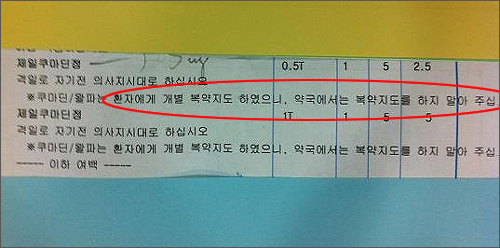 그 만큼 복약지도 상에 각별한 주의가 필요해 병원 측에서는 병원과 약국 간 복용법 설명에 혼선을 막기 위한 조치일 것이라는 추측이다.