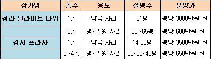 청라 딜라이트 타워는 지하 4층, 지상 13층 규모로 인천 청라신도시도 내 중심 사업지구에 자리 잡고 있다. 1층 약국 자리는 평당 3000만원 수준으로 실평수는 21평, 분양면적은 42평대다. 전용율은 48.8%다.