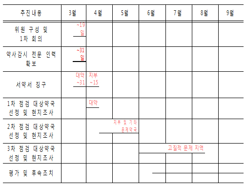 6월부터 고질적인 문제지역 점검이 시작되며 9월 후속조치까지 모두 마무리된다.