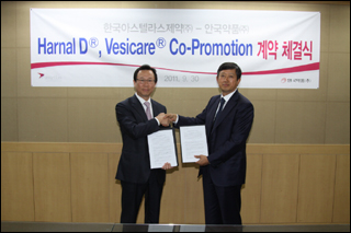 안국약품(사장 어진)과 한국아스텔라스제약(사장 정해도)은 지난달 30일 전립선비대증에 따른 배뇨장애 증상개선제 하루날디'와 과민성방광증상 치료제 '베시케어'에 대한 코프로모션 계약을 체결했다고 4일 밝혔다. '하루날디(성분명 Tamsulosin HCI)'는 뛰어난 안전성과 유효성을 기반으로 전립선 비대증에 따른 배뇨장애 증상 개선을 위해 처방되는 연매출 400억원 이상의 초대형 품목이다.
