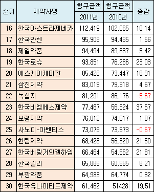 - 30대 제약사 청구액 분석, 다국적사·중견사 성장 뚜렷