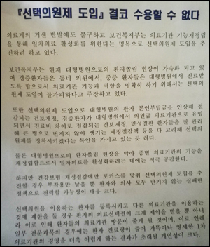 개원의협 "선택의원제 도입 수용 불가" 성명
