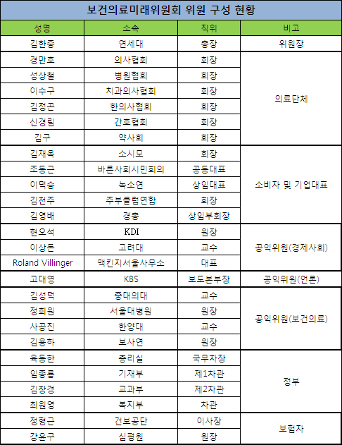 정부와 의료공급자에 대한 불신 때문인데, 양대노총인 민주노총, 한국노총, 주류 시민단체인 참여연대와 경실련이 이들 단체다.