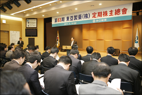 동아제약은 18일 오전 10시 용두동 본사 강당에서 제63기 정기 주주총회를 개최하고 김진호 한국GSK사장을 기타비상무이사에 선임했다.