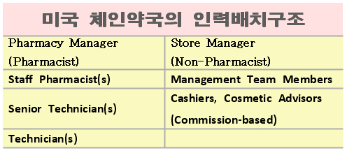 슈퍼와 약국이 동거하는 미국의 제도를 슈퍼와 약국이 별거하는 한국의 제도와 비교할 수는 없다. 다만 의약분업이 정착되어가는 시점에서 한국의 의료제도하에서 현존하는 여러 요인을 고려했을 때 약사 역할이 얼마나 제대로 정의될 수 있을 것인지, 어떻게 하면 환자가 약사를 (의약품을) 필요로 할 때 적시에 적절한 서비스를 제공할 수 있을지 고민해볼 필요가 있다.