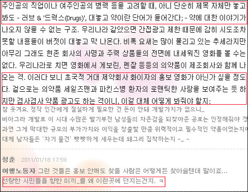 ◆네티즌들도 인정한 '대놓고 약광고'= 러브앤드럭스 전문약 광고 비판은 국내 제약계 뿐아니라 네티즌들 사이에서도 거론됐다