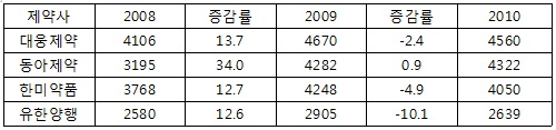 - 유한·한미 처방약 시장 부진 여파, 동아·녹십자·대웅 순