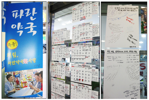 10일 파란약국을 찾았을 때 입구부터 인기 방송 프로그램인 '무릎팍도사'를 패러디한 펼침막이 예사롭지 않게 보였다.