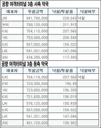 출국장 동측 약국도 최저 임대수수료 3억6812만원에 입찰을 시작했지만 7억6411만원을 제시한 K씨가 영업권을 따냈다.