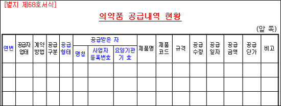 복지부는 지난 달 20일 입법예고한 약사법 시행규칙 개정안을 통해 의약품 공급내역 보고 서식에 요양기관 기호를 반드시 표기토록 해 향후 개정안이 확정될 경우 약국에서는 사업자등록번호, 요양기관기호 등을 의약품 공급업체에 제공해야 한다.