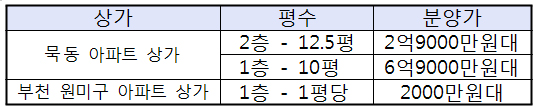 아파트 상가의 3.3㎡당 분양가는 1층 2000만원 초반, 2층은 550만원~700만원, 3층은 480만원~590만원선이다.