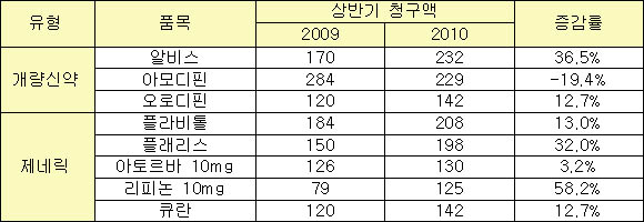 [2010년 상반기 개량신약-제네릭 청구액 현황]