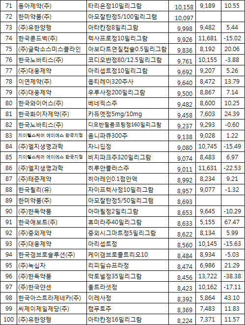 [올해 상반기 청구액 순위 100대 의약품 현황]