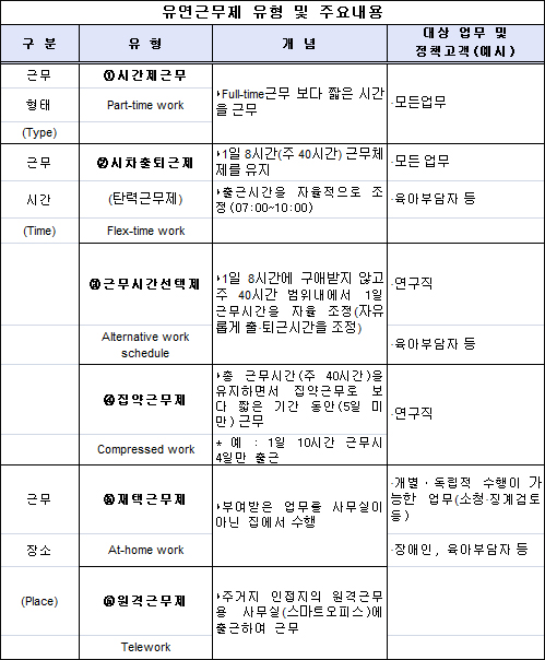 식약청은 “유연근무제는 개인적인 편의 제공만을 목적으로 하는 제도가 아니라, 업무 자율성 부여를 통해 개인의 직무 만족도 향상과 결과에 책임지는 성과중심의 조직문화 형성을 목적으로 한다”고 밝혔다.