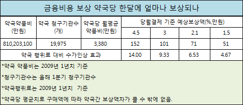 금융비용 1% 늘면 약국 1곳당 월수입 33만원 증가