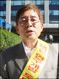 1인시위 첫 번째 '주자'가 된 그는 이날 오전 6시30분 수원에서 출발해 7시가 조금 넘은 시각 복지부앞에 도착했다. 아침부터 폭염은 기승을 부렸지만 김 사장은 예정된 시간보다 조금 빠른 7시45분부터 1인시위에 들어갔다.