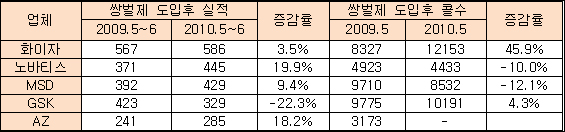 반면 노바티스가 두달간 20%가까이 처방 실적이 증가하는 등 다국적 제약사들의 경우 원외 처방액이 대부분 성장하면서 대조를 이뤘다.