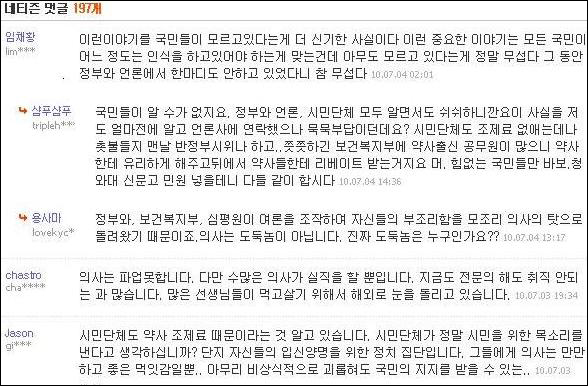 글을 올린 아이디 seck**씨는 현재 구미에서 개인 병원을 운영하고 있는 원장으로 의료 현안이 발생할 때 마다 다음 아고라, 의사 온라인커뮤티니 등에서 글을 게재하면서 활발한 활동을 펼치고 있다.