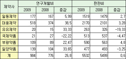 반면, 일동제약(2.7%)과 대웅제약(3.28%), 부광약품(4.8%)은 판관비 지출을 늘렸다.