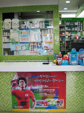 삼성동 소제 O약국은 한 유통업체가 제공한 현수막과 포스터로 월드컵 분위기를 연출했다. 비타민 등의 제품도 전진배치했다.