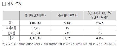 신 박사의 연구에서는 전체 약국의 80% 가까이가 차등수가 적용에서 제외된 것으로 나타났지만 내부조사에 의하면 이 보다 많은 약국들이 차등수가를 적용받고 있다는 것이다.