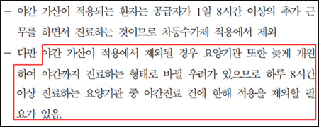 "급여비 가산까지 하는 야간시간대 차등수가 적용은 부당"