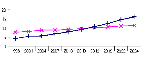 건강연대는 2015년엔 10.20%로 10.05%인 OECD국가 평균수준을 추월하고 2024년에 들어 16.08%로 OECD 국가평균인 11.54%보다 4.54포인트 높아져 국민 1인당 세계에서 가장 높은 의료비를 지출해야 될 것이라고 경고했다.