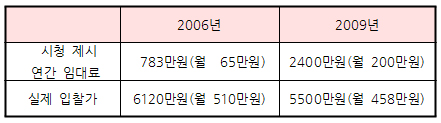그러나 실제 낙찰가는 월 임대료 458만원대(연 5500만원)에 재계약됐다. 감정평가 임대료는 올랐지만 실제 낙찰가는 하락한 것.