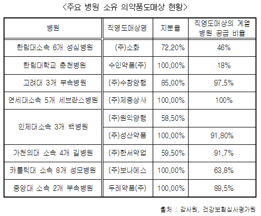 약사회는 지난 국정감사에서 전혜숙 의원이 공개한 병원들의 직영 도매업체 운영현황 등을 근거로 약국 시장의 대자본 유입이 가져올 약국과 의료기관, 제약업체 등과의 결탁에 대해 강한 우려를 표시하고 있다.