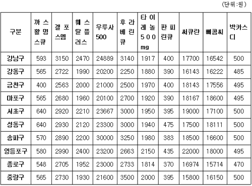 서울 지역내 약국 간 다빈도 일반의약품 판매 가격 차이가 최고 3배까지 발생하고 있는 것으로 확인됐다.