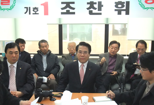 조 후보 선대본부 이호선 선대위원장은 "김 후보가 과거 부정청구로 영업정지를 받은 사실이 있다는 제보가 있었다"며 "김 후보측에 이를 공개적으로 질의해 사실 여부를 확인코자 한다"고 밝혔다.