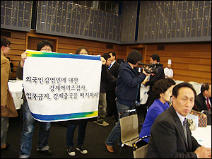 시상식 기념사를 위해 전재희 복지부장관이 단상에 올라서자 기다렸다는 듯이 의약품공동행동과 에이즈인권단체 회원 10여명이 행동에 나선 것이다.