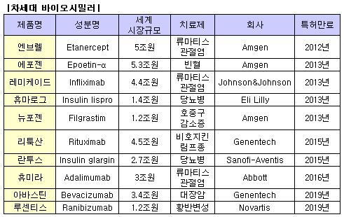 따라서 상대적으로 기술력과 자금력이 부족한 국내 기업은 2012년 특허가 만료되는 2세대 바이오시밀러 시장을 목표로 전문 R&D기업과 전략적 제휴를 모색하는 것이 현실적이라는 전망이 제시됐다.