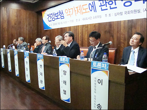 한나라당 심재철 의원과 건강복지정책연구원이 9일 공동 주최한 약가제도 정책토론회에서 정치판의 단골매뉴가 보건의료계에서 재연됐다.