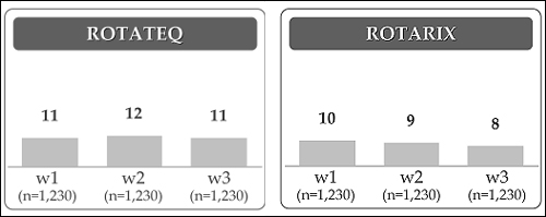 로타바이러스 백신 또한 세번의 조사에서 82~83%가 아는 브랜드명이 없다고 답했다.