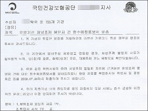 데일리팜이 입수한 공문을 보면 처방, 조제 불일치 사유는 품목 누락, 일(총)투약 오류, 대체조제 가능 유형 등인 것으로 나타났다.