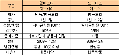 2개월 먼저 시장에 나온 ‘자누비아’가 시장을 선점하면서 파이를 키워가고, 그 뒤를 ‘가브스’가 뒤따르고 있는 형국이다.