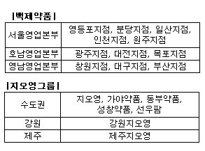 도매업계 '빅3'인 백제약품과 지오영그룹의 진출지역을 살펴보면, 백제약품은 단일회사로 서울수도권과 호남, 영남 등지에 지점을 개설해 진출해 있다.