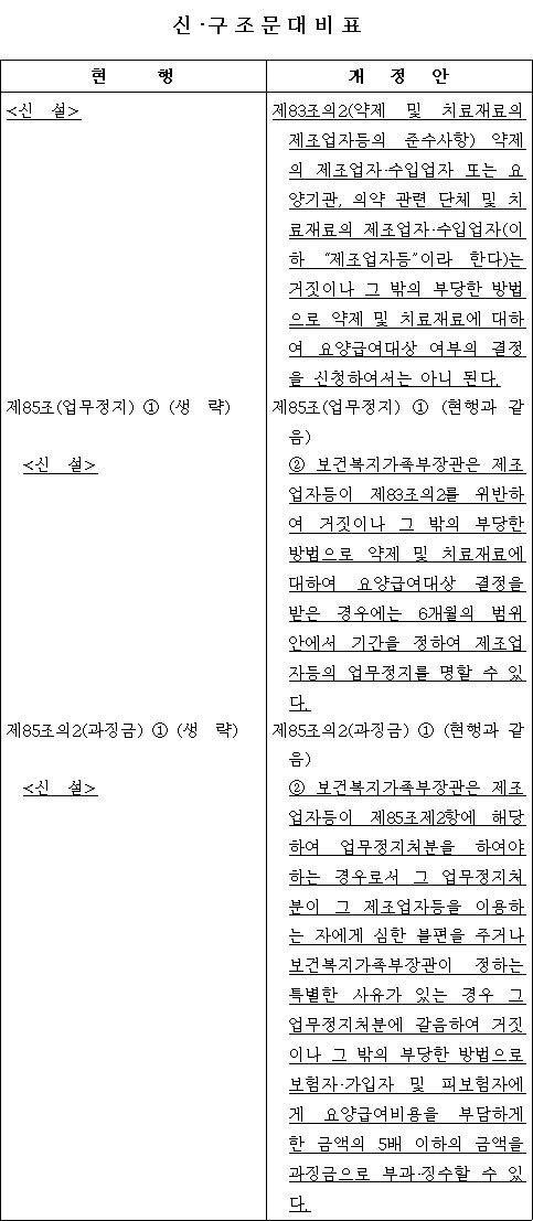 백 의원은 "제약사 등이 거짓 자료를 제출하는 등 부당한 방법으로 건강보험 재정에 손해를 발생시키면 과징금을 부과할 수 있도록 해 현행법 체계의 미비점을 보완해야 한다"고 제안 이유를 밝혔다.