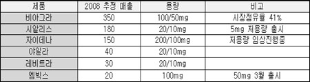 3파전 발기부전치료제시장 점유경쟁 가속도