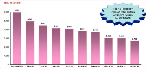 또한 대원제약의 국산신약 ‘펠루비’, 동아제약 ‘스티렌’, 노바티스와 화이자가 공동 판촉하고 있는 혈압약 ‘엑스포지’, 종근당의 코자 제네릭 ‘살로탄’등이 영업사원 품목 디테일 선두권을 형성했다.