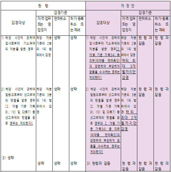 복지부는 행정처분 감경기한의 상한을 설정하고 의약품 판매촉진과 관련해 금품 수수시 감경기준 적용을 배제하는 등 현행 제도의 운영상 나타난 문제점을 개선하기 위해 개정안을 마련했다고 말했다.