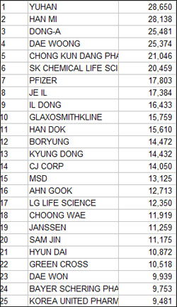 - 하반기 디테일 상위권…영업사원 방문율 유한-한미-동아 순