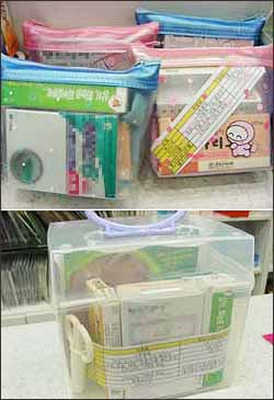 가방은 인터넷 쇼핑몰에서 개당 700원씩 하는 제품을 색깔별로 다량 할인구매 몇 해에 걸쳐 사용하고 있으며 제품과 함께 제품명과 적응증, 용법이 상세히 적힌 복약지도 페이퍼를 만들어 넣었다.