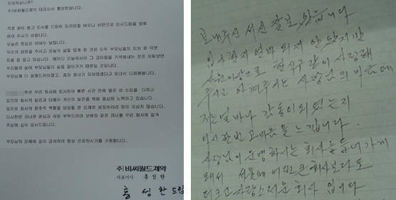 - 비씨월드 홍성한 사장, 직원 부모님께 자필 편지 전달 화제