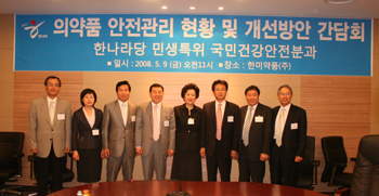 이날 간담회는 한나라당 민생특위 국민건강안전분과가 의약품 생산·유통·소비와 관련된 전반적인 의견을 들어보기 위해 마련됐다.
